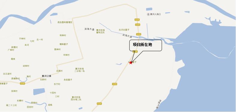 五十七加油加氣中心擬建于東營市墾利區新博路延長線與東八路交叉口南1100m,占地面積11415.8m2,該區域不屬于城市建成區、城市中心區,該站東側為一處通信發射塔,南側為水池,西側為東八路,路對面為空地,西北側為黃河農場大橋,北側為河流,東北處為民房。