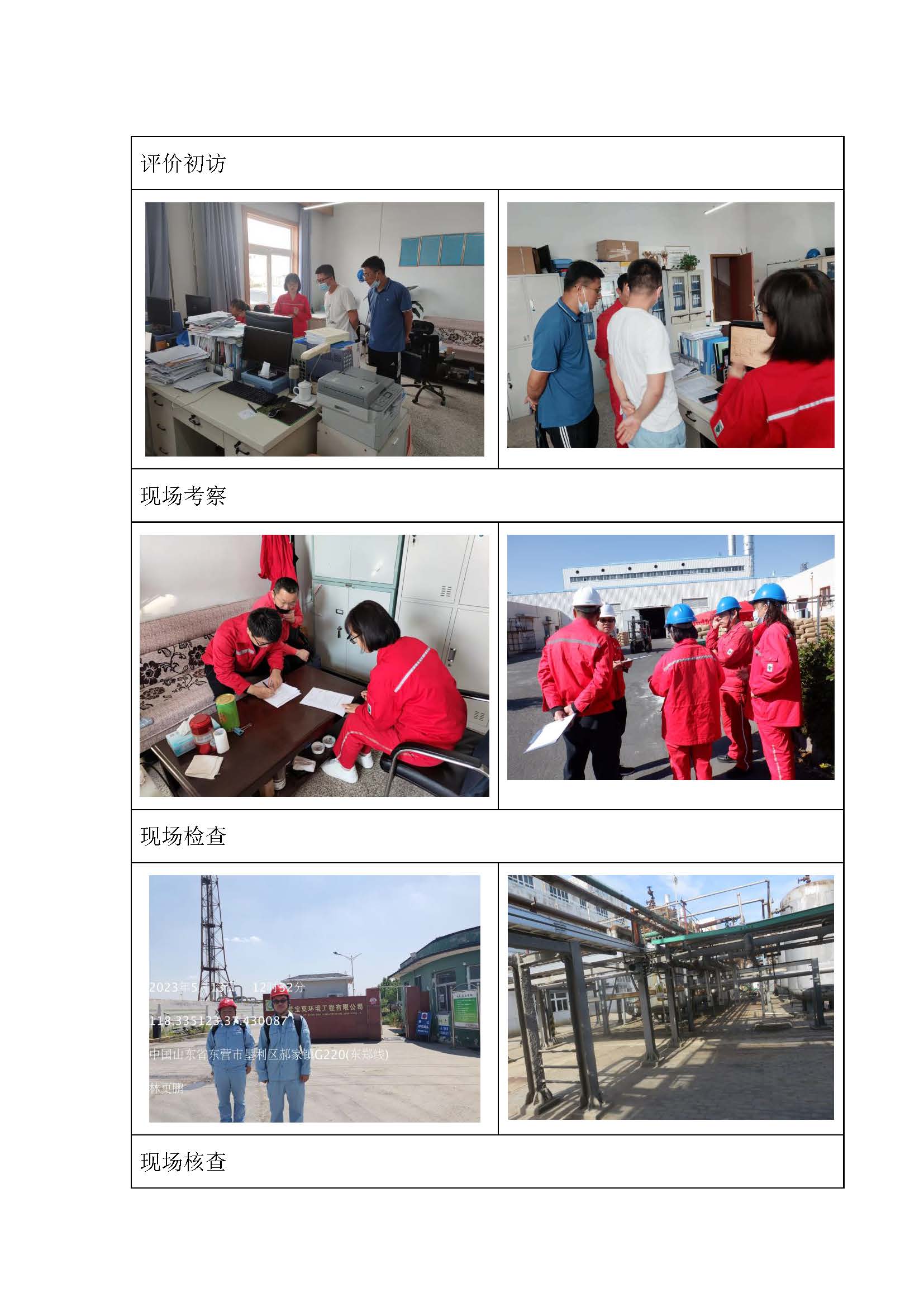 到現場開展安全評價工作的人員名單、時間和主要任務 |