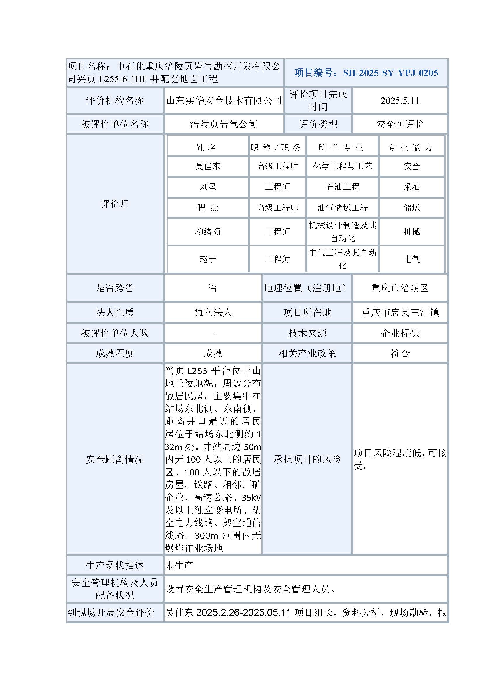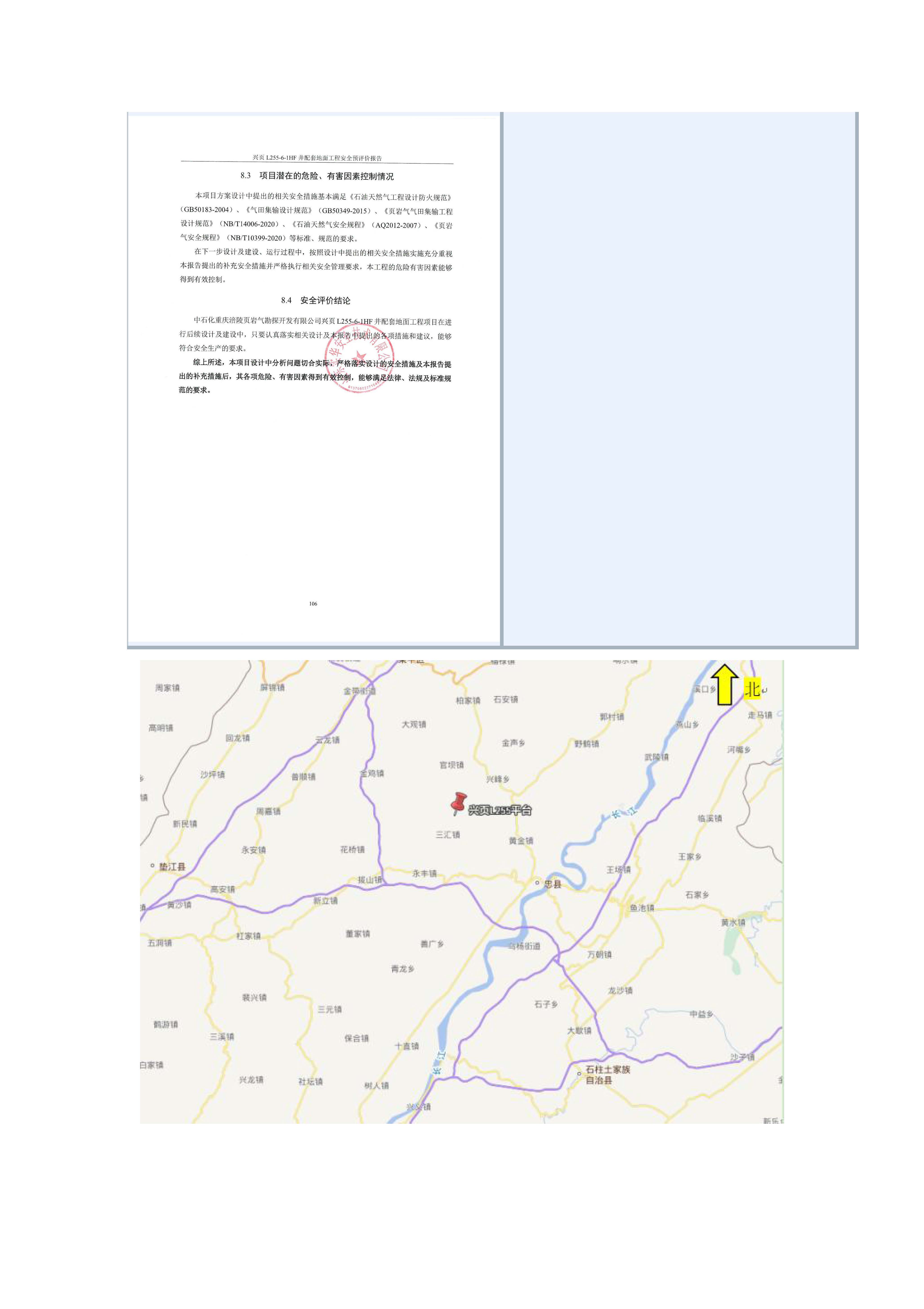 中石化重慶涪陵頁巖氣勘探開發(fā)有限公司興頁L255-6-1HF井配套地面工程安全預(yù)評價
